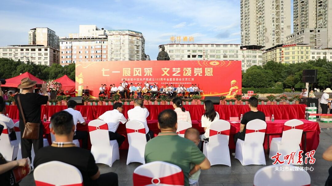 在中国共产党成立103周年之际,6月21日,耒阳市金星社区在发明家广场举办了“七一展风采·文艺颂党恩”文艺汇演。市政协副主席、文旅广体局局长陆小勇出席并讲话。