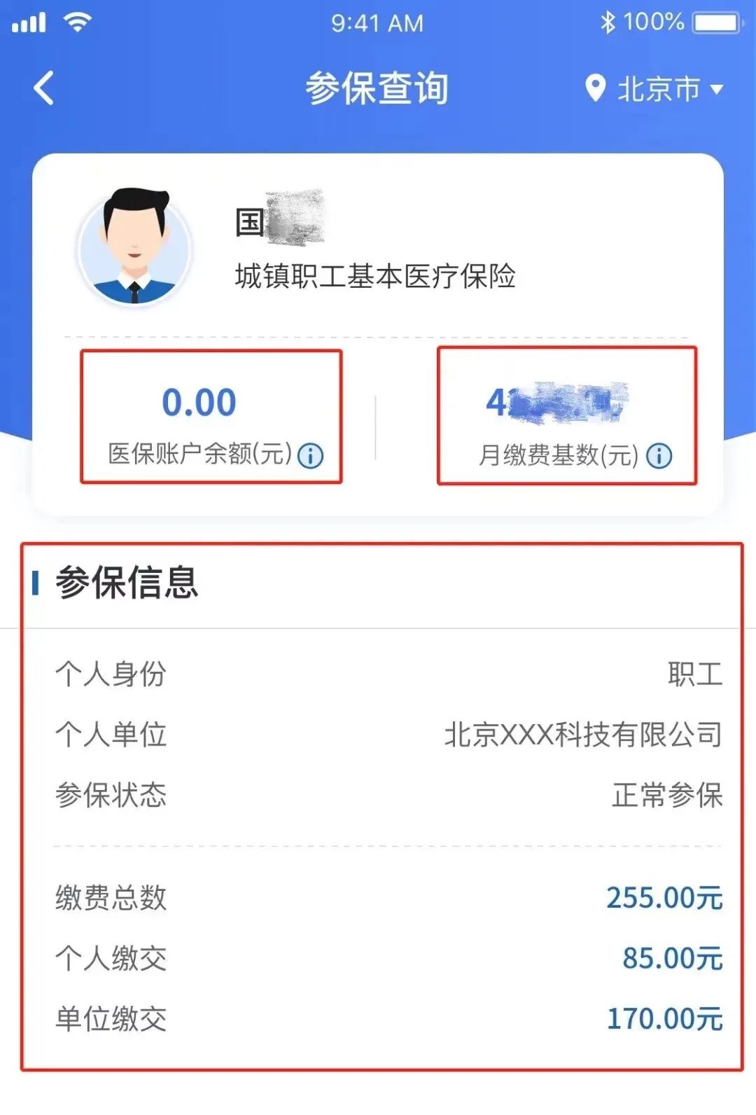 登录“国家医保服务平台APP”,点击【首页】-【个人参保信息】即可查询你的医保账户余额、月缴费基数以及个人参保信息。