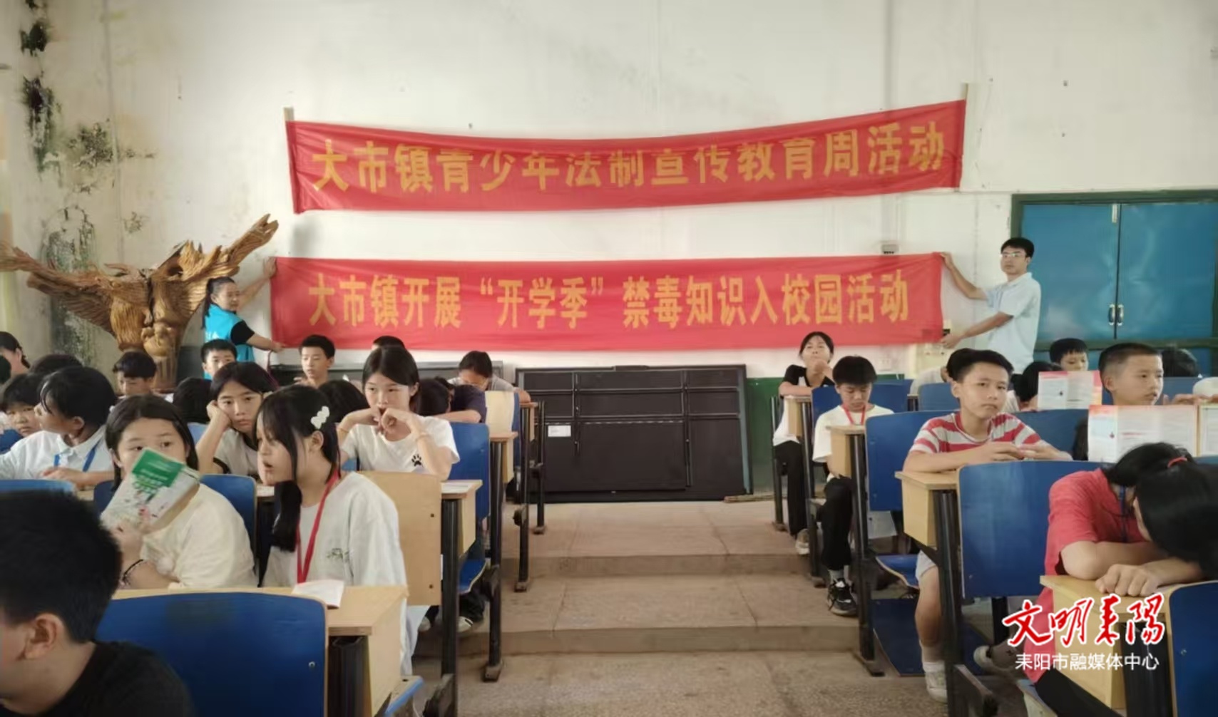 耒阳融媒9月18日讯(记者 徐霞 通讯员 张再芝)9月17日上午,大市镇在大市中学开展“开学季”禁毒知识入校园活动,提升广大学生的禁毒意识和自我保护能力,保障青少年身心健康成长。