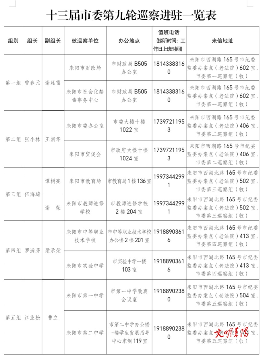 耒阳融媒9月18日讯(记者 赵娟 匡经强)根据十三届耒阳市委第九轮巡察工作安排,近日,市委5个巡察组完成对市财政局、市教育局等10个单位的进驻工作,十三届市委第九轮巡察工作全面展开。