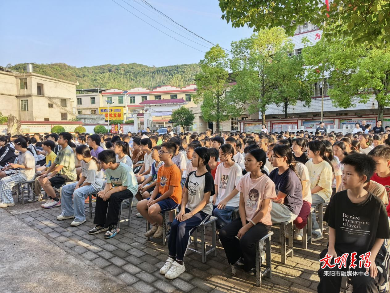 耒阳融媒9月19日讯(记者 梁斌 通讯员 陆元堃)9月18日上午,黄市镇组织派出所、禁毒办相关工作人员及志愿者走进黄市中学,开展禁毒及校园霸凌“开学第一课”法治讲座宣传活动,为数百位学生带来了一场别开生面的法律课堂。