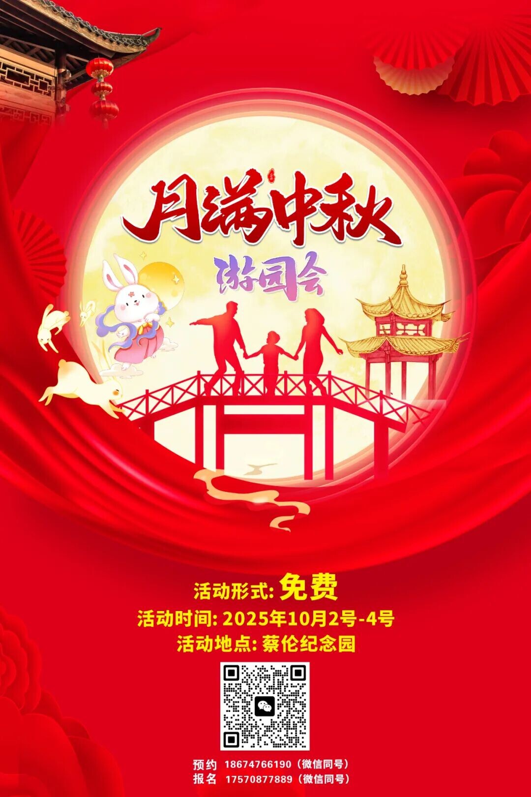 蔡伦纪念园静候您与家人的到来,共赴中秋美好之约!