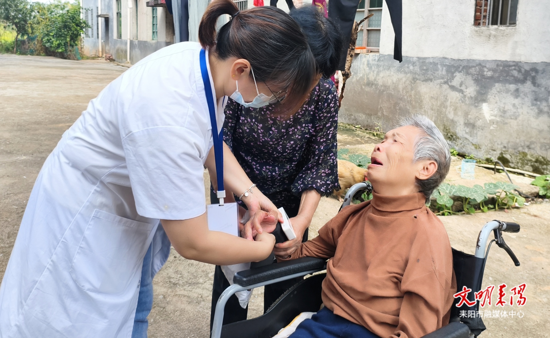 10月1日正午时分,在五里牌街道锡里社区11组,来自五里牌第一社区卫生服务中心的家庭医生团队5人小队携带血压计、血糖仪等设备,挨家挨户走访老人家庭。他们为老人测量血压、检查心肺功能,并根据他们的身体情况,指导家属学会科学护理方法、饮食营养搭配等方面的知识。