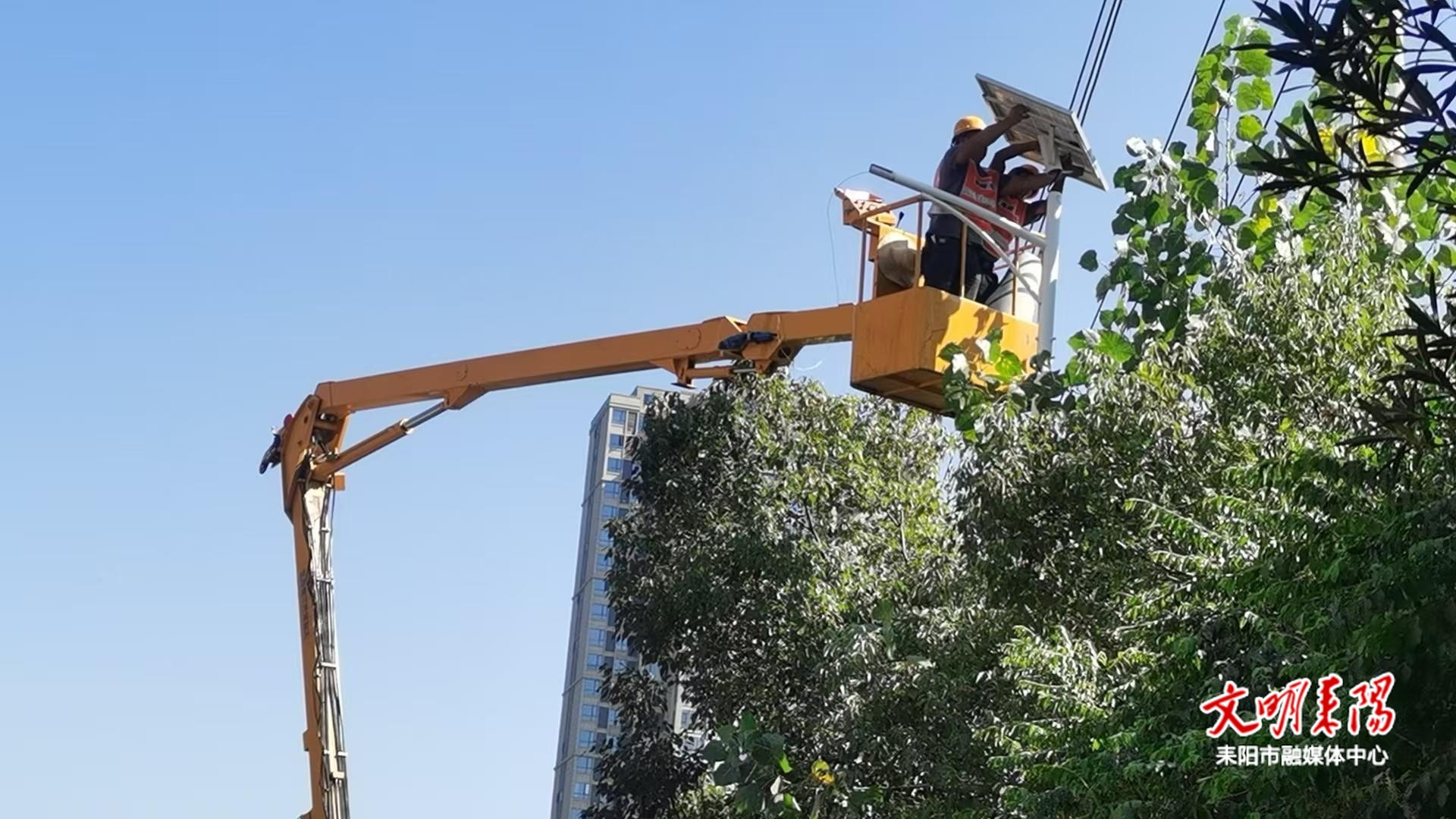 除城区主要路段外,107 国道(耒阳大道至拥军路)的路灯改造工程同样如火如荼地进行。考虑到国道交通流量大、夜间行车安全需求高的特点,市政公用事业服务中心创新采用太阳能路灯,既响应了绿色低碳发展理念,又能有效保障道路照明稳定性。施工过程中,工作人员一方面对原有旧灯杆进行检修维护,充分发挥其使用价值,在旧杆基础上安装太阳能路灯 59 盏;另一方面,根据道路实际照明需求,新建太阳能路灯 52 基。