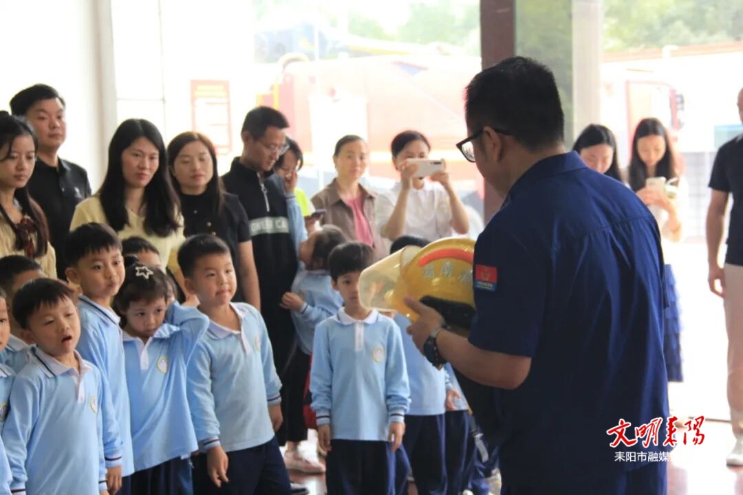 耒阳融媒10月17日讯(记者 李靖宇)10月16日上午,耒阳市消防大队开展对外开放日活动,辖区港湘幼儿园师生及家长志愿者走进营区,通过 “看装备、学技能、仿训练、观内务” 的沉浸式体验,开启消防安全主题学习之旅,近距离了解 “火焰蓝” 工作日常。