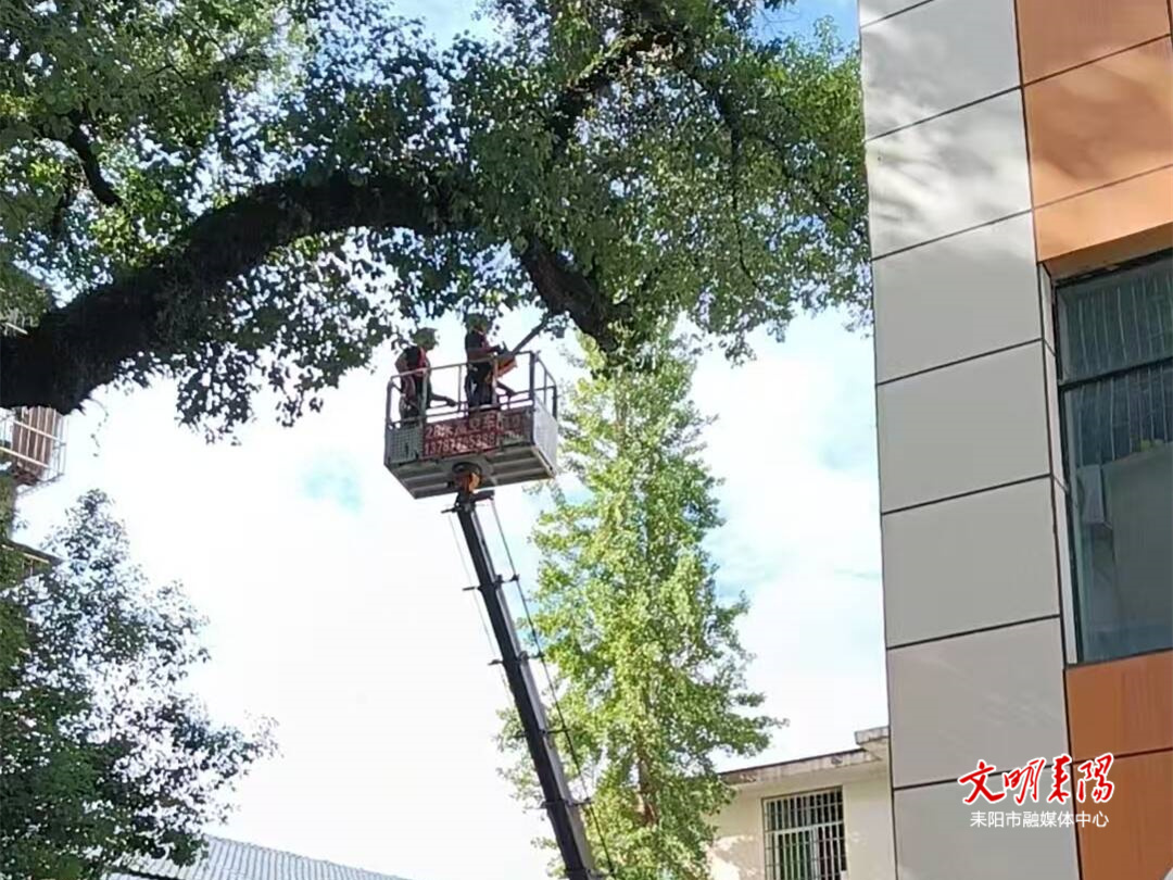 耒阳融媒10月20日讯(记者 刘喜)整理树冠、清腐防腐……近日,在耒阳中豪小学校内一处古树名木养护现场,市园林绿化事务中心工作人员正有序开展古树名木管护工作。