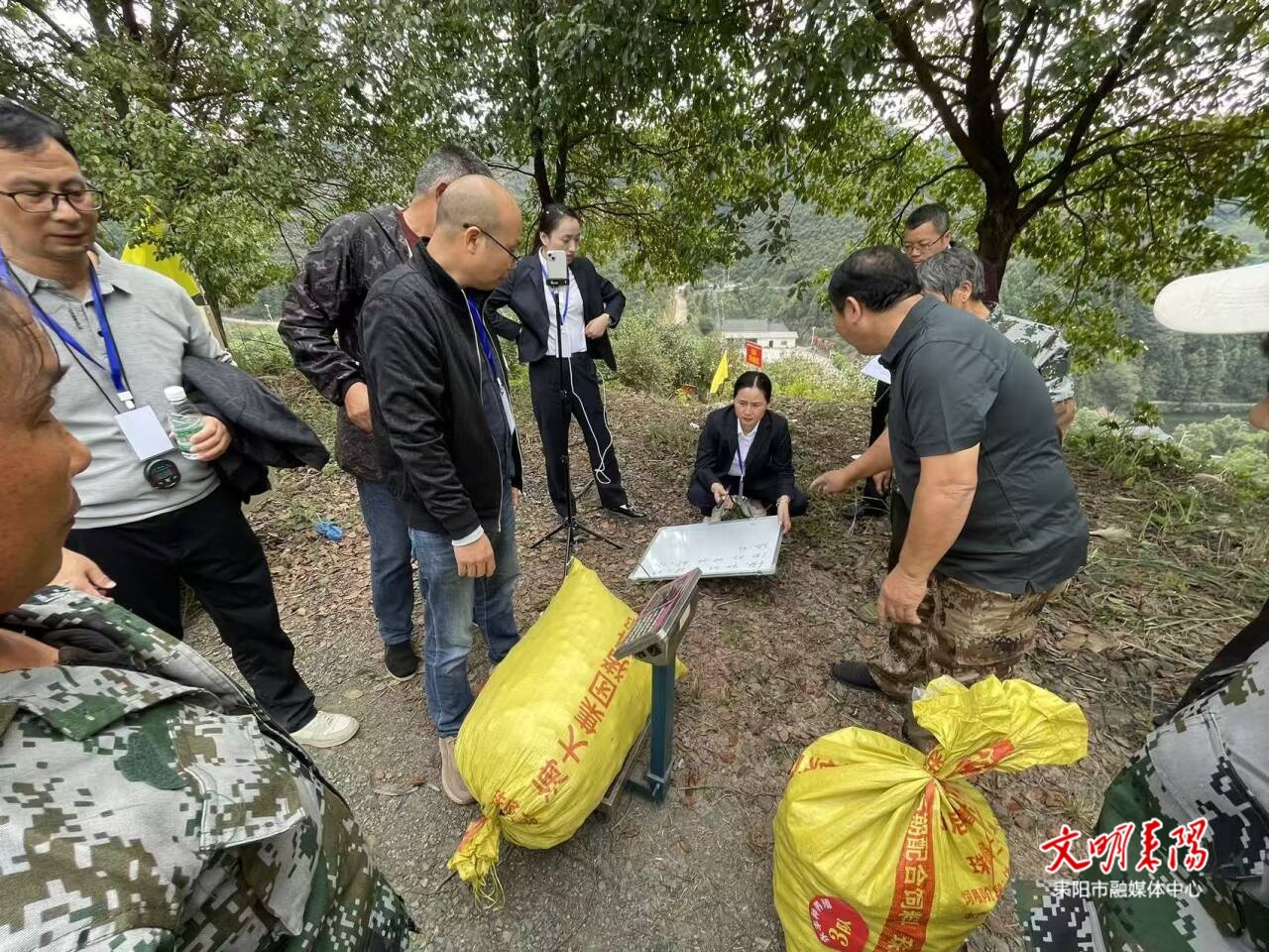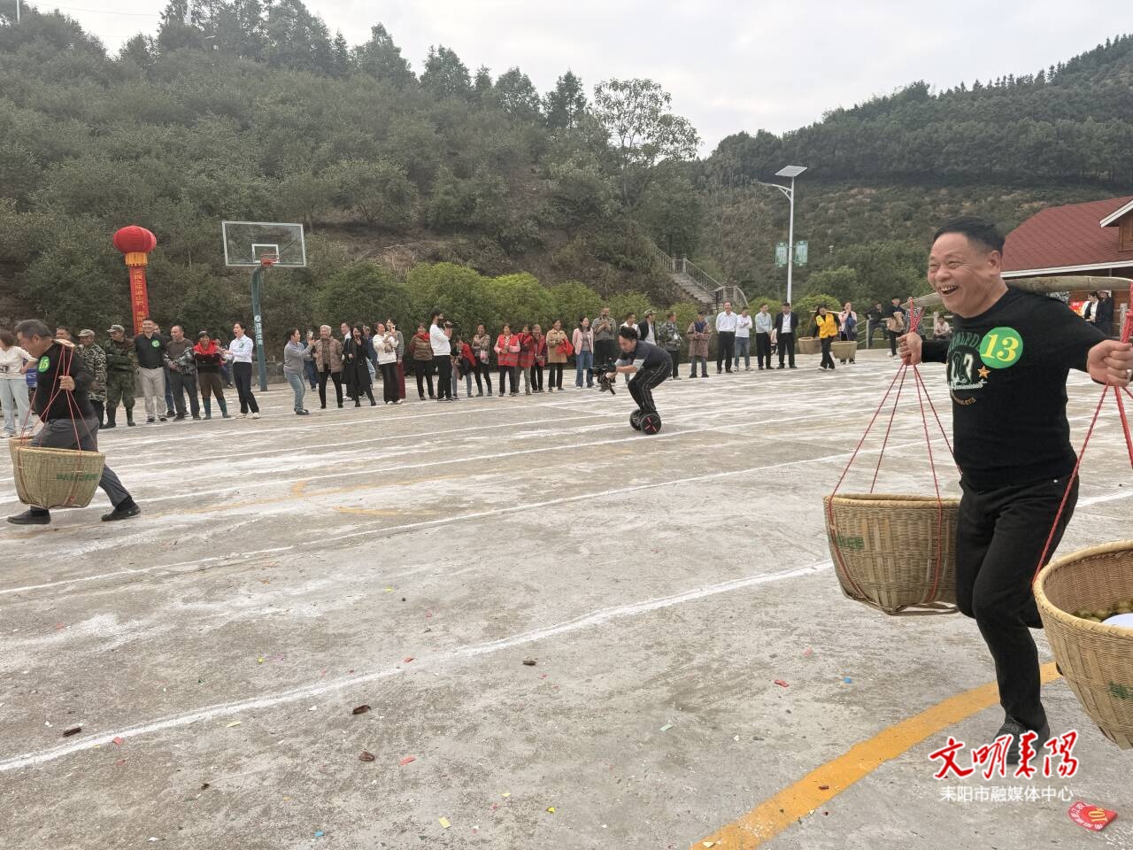 眼下,汤泉村神农温泉生态农庄有限公司油茶基地迎来了结果期,连绵起伏的山坡被茂密的油茶林覆盖,沉甸甸的油茶果压弯了枝条。比赛现场,随着裁判一声令下,参赛选手们手持采摘工具,纷纷扎进油茶林,大家热情似火、动作娴熟、手速迅猛,都在争分夺秒地采摘着缀满枝头的果实,一袋袋油茶果迅速装满,欢声笑语洋溢着丰收的喜悦。经过精彩角逐,最终耒阳市南阳镇淝江农业专业合作社摘得桂冠,共计摘得油茶果229.4斤;刘贱文在“担茶果”比赛中荣获一等奖。