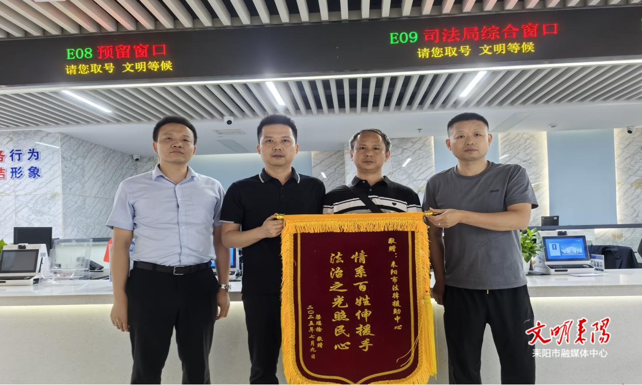 耒阳市法律援助中心的墙上,悬挂着一面“情系百姓伸援手,法治之光照民心”锦旗,这锦旗背后藏着一个温情故事。