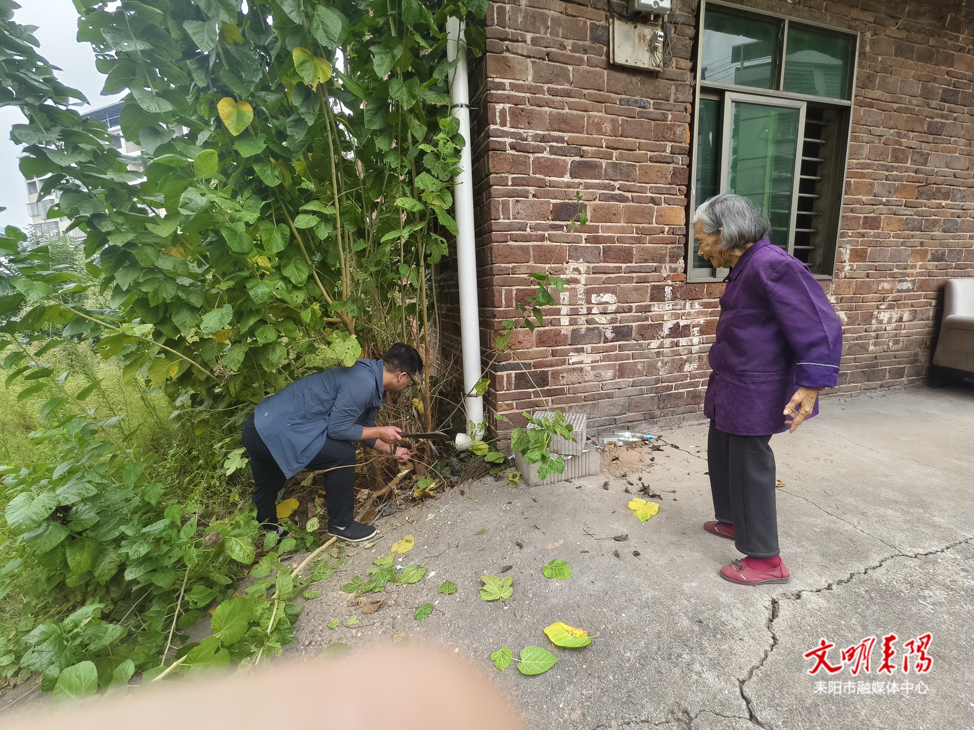 耒阳融媒11月3日讯(记者 刘喜)11月2日,记者在新市镇方田驿村看到,一片杂乱的树丛旁,驻村工作队队员周海手中的除草机正发出阵阵轰鸣。随着杂草被清除,村里黄奶奶屋前逐渐变得宽敞整洁。