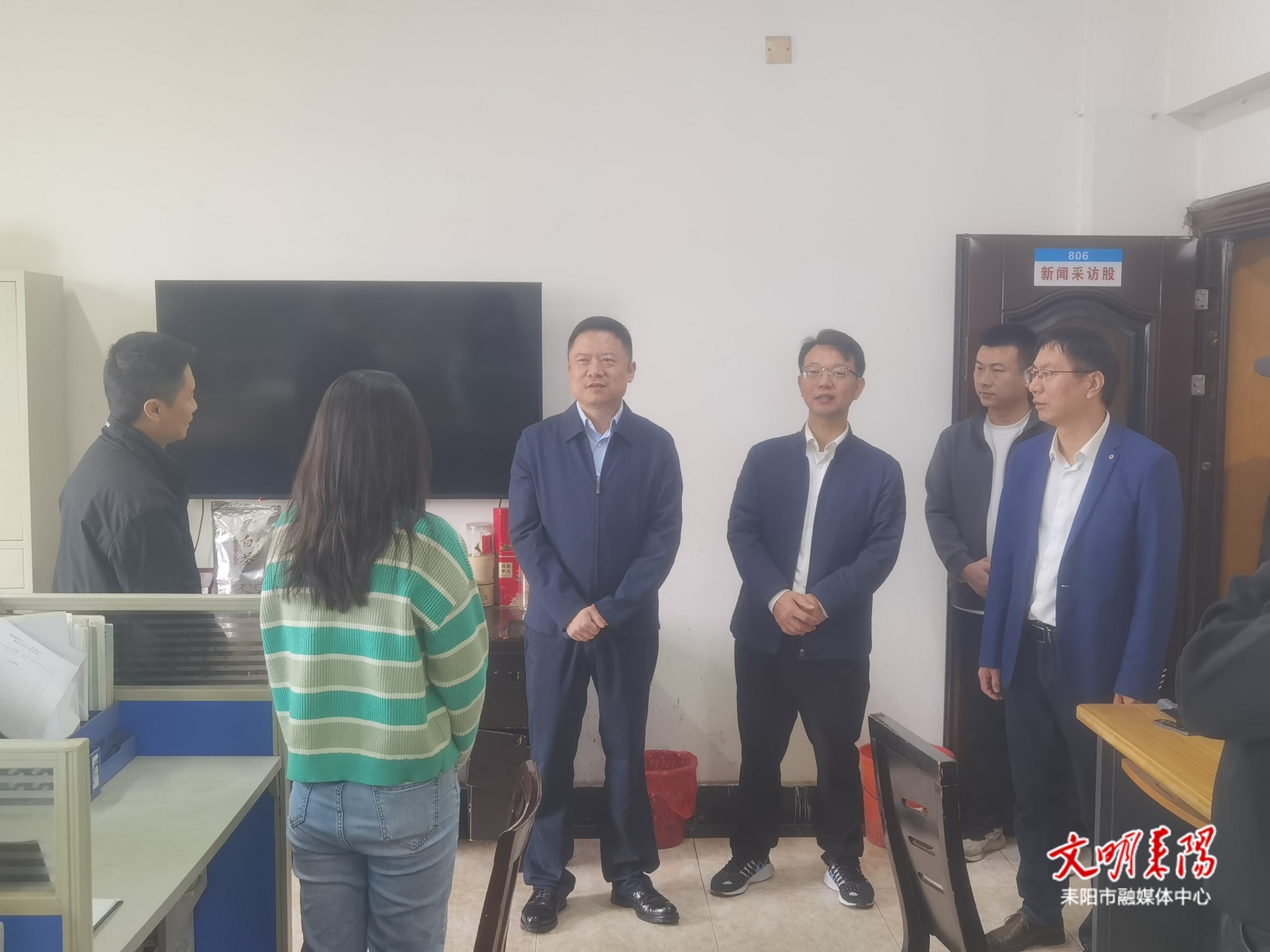 张涛先后走进中央厨房、采编制作室、演播室等功能区,与新闻工作者们亲切交流,详细了解融媒矩阵、精品创作、经营创收等情况,对市融媒体中心在讲好耒阳故事、传播耒阳声音、展示耒阳形象中作出的积极贡献给予充分肯定。