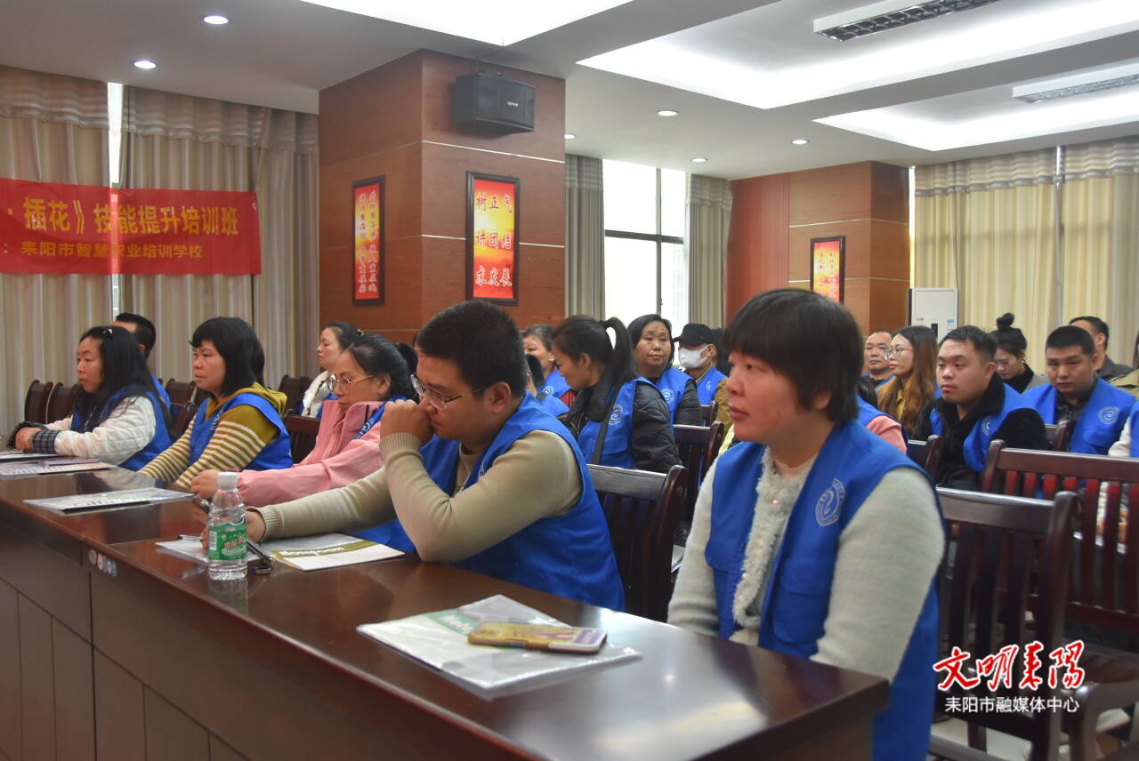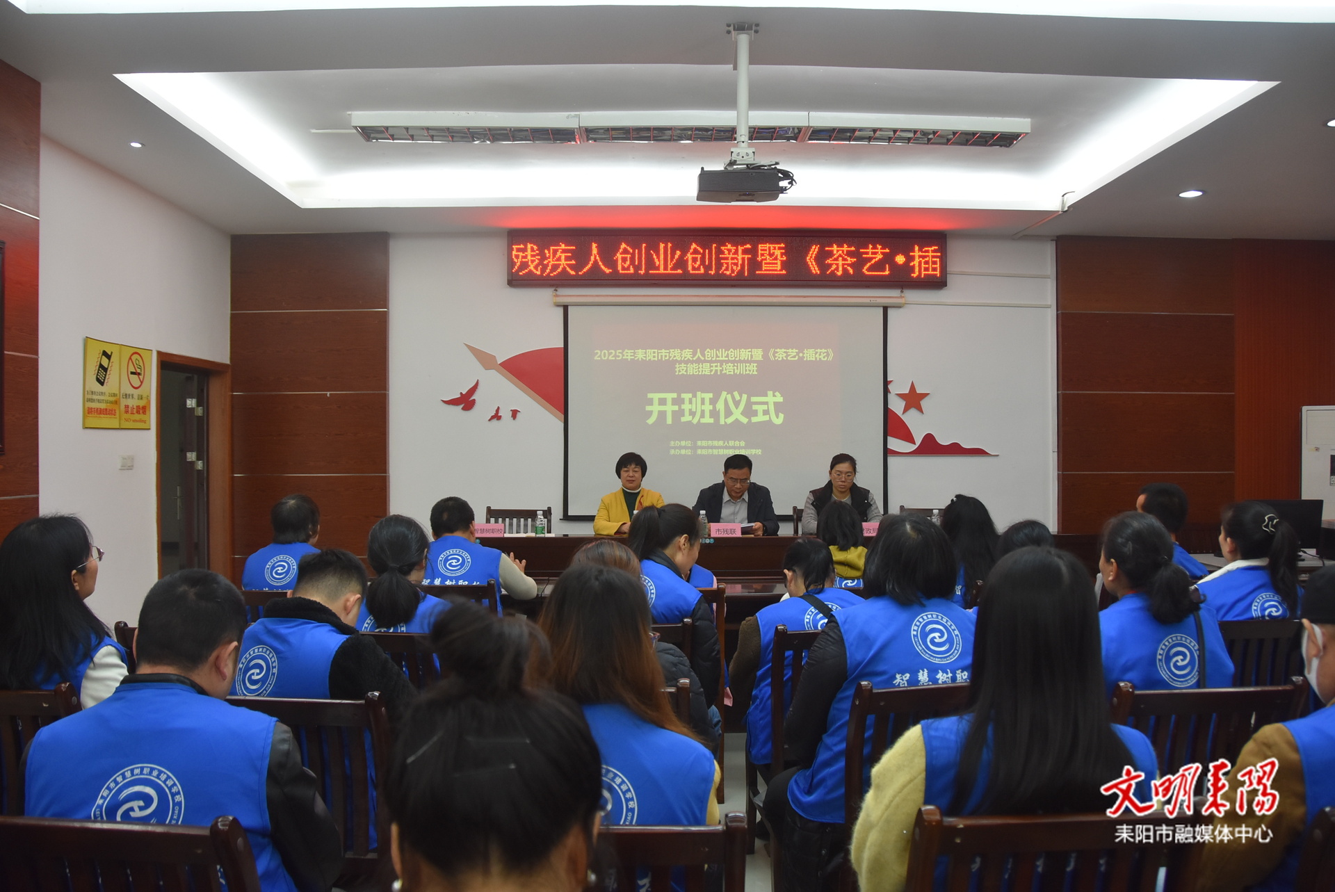 耒阳融媒11月14日讯(记者 梁斌)11月13日,耒阳市举办2025年残疾人创业创新暨茶艺及插花技能培训,中国插花花艺协会讲师、茶艺技师朱惠君应邀前来授课,我市数十名残疾人参加培训。