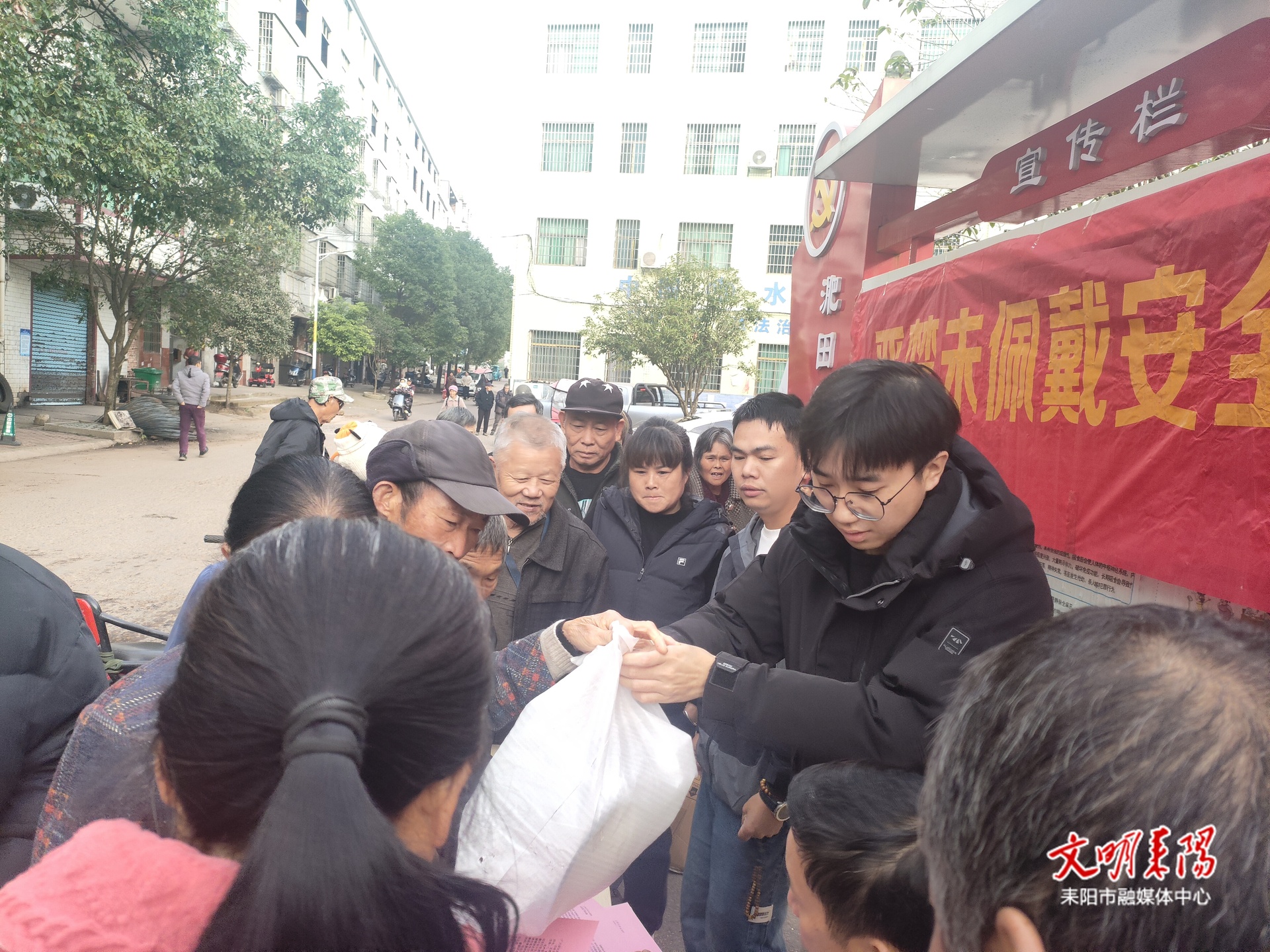 耒阳融媒11月19日讯(记者 江维东)11月19日,耒阳市道安办、淝田镇利用赶集日人员集中的契机,在淝田镇集市上开展道路交通“送帽工程”主题活动,将交通安全知识宣传送到群众身边。