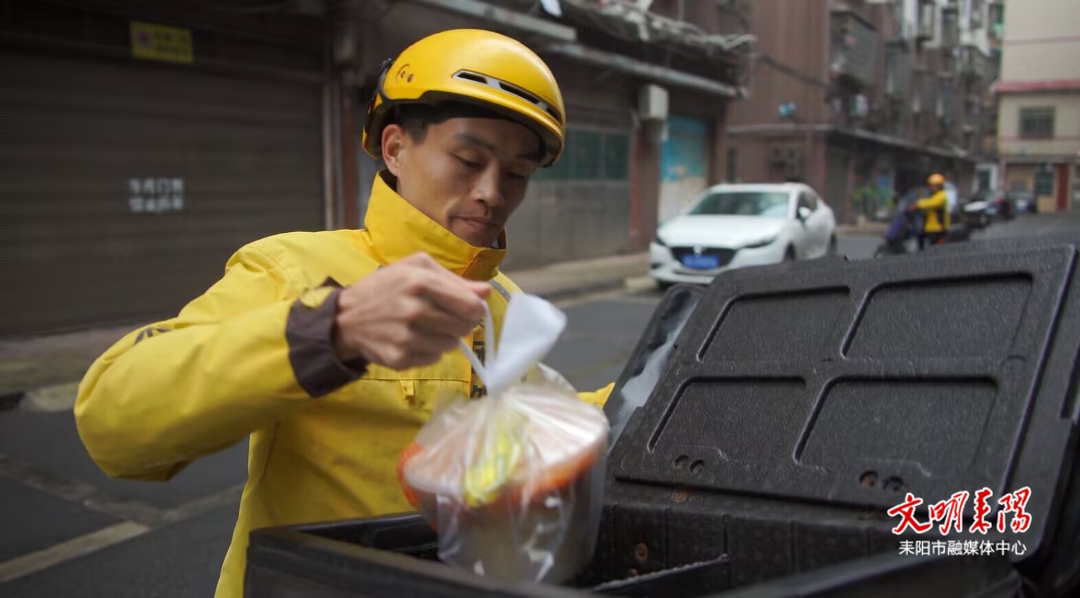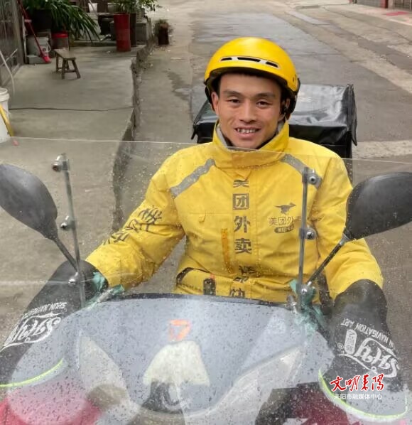 “我觉得是顾客的需求给了我一份生计,我很感恩他们。所以当我送完餐,只要顾客有需求我一定会上前搭把手。”何意从不主动提及自己的困难,却总在不经意间传递着温暖与善意。遇到赶时间的学生,他会加快速度,尽量提前送达;遇到拎着重物的路人,他会主动停下帮忙;配送间隙,他还会顺手捡起路边的垃圾,用细微的行动温暖着这座城市。