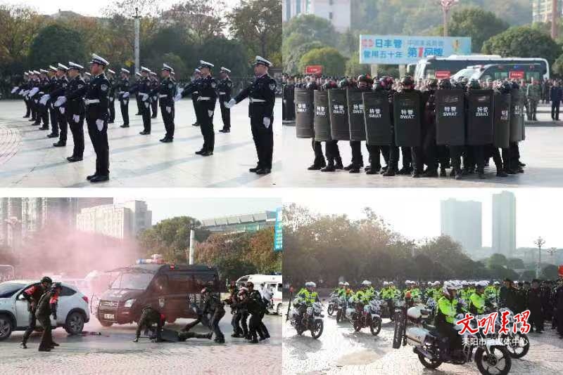 活动现场,市公安局交警大队、巡特警大队先后进行了交通指挥手势操、防暴技战术及反恐综合演练,全面展示了公安队伍的良好精神风貌,充分彰显了坚决维护社会治安大局稳定的坚强信心和决心。