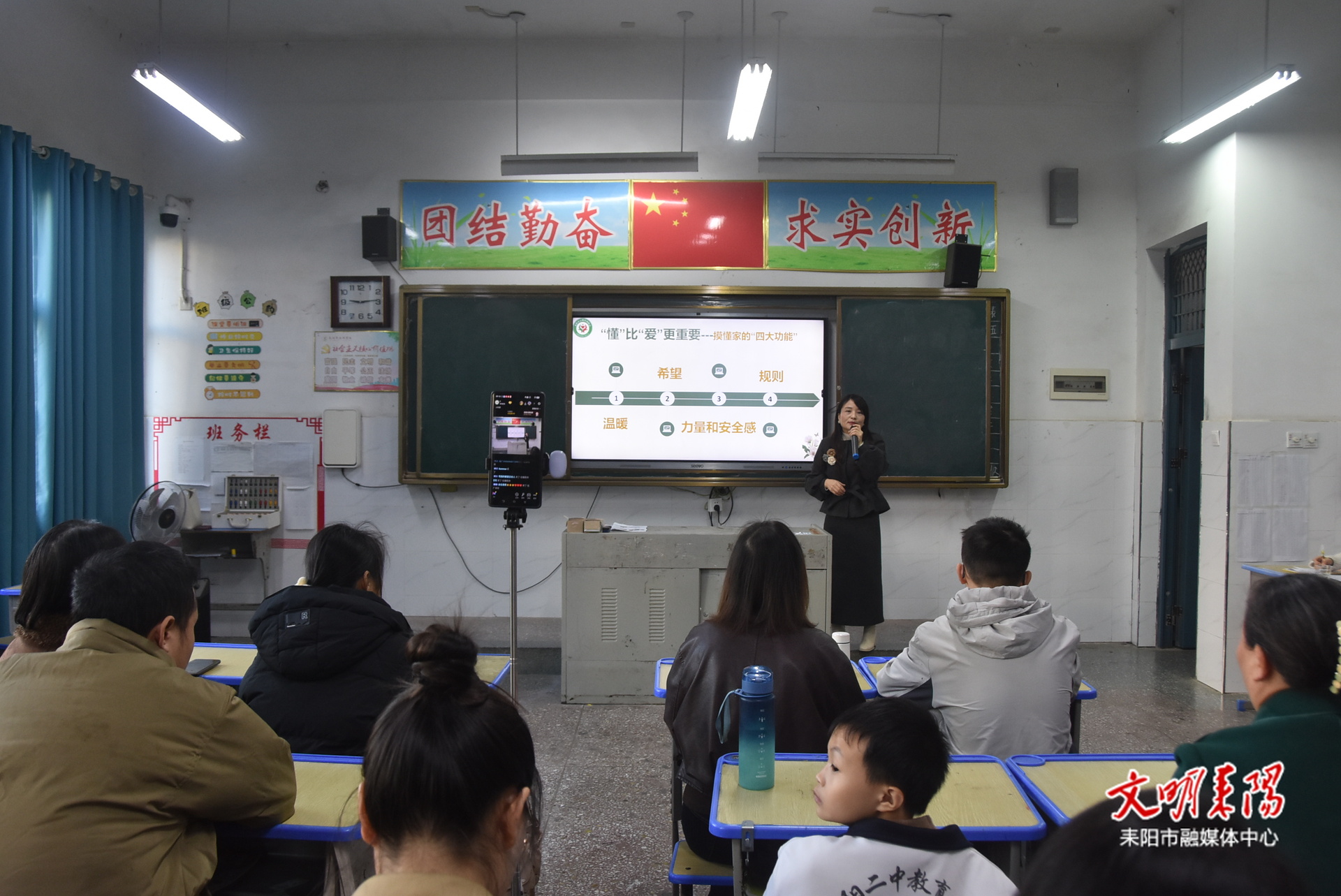 耒阳融媒12月21日讯(记者 梁斌)12月20日上午,耒阳市西湖学校举办别开生面的家庭心理健康教育公益讲座。活动由市心理咨询协会主办、搏击协会协办,创新融合心理健康教育与搏击运动,为家庭教育赋能,助力构建“成长型家庭”。