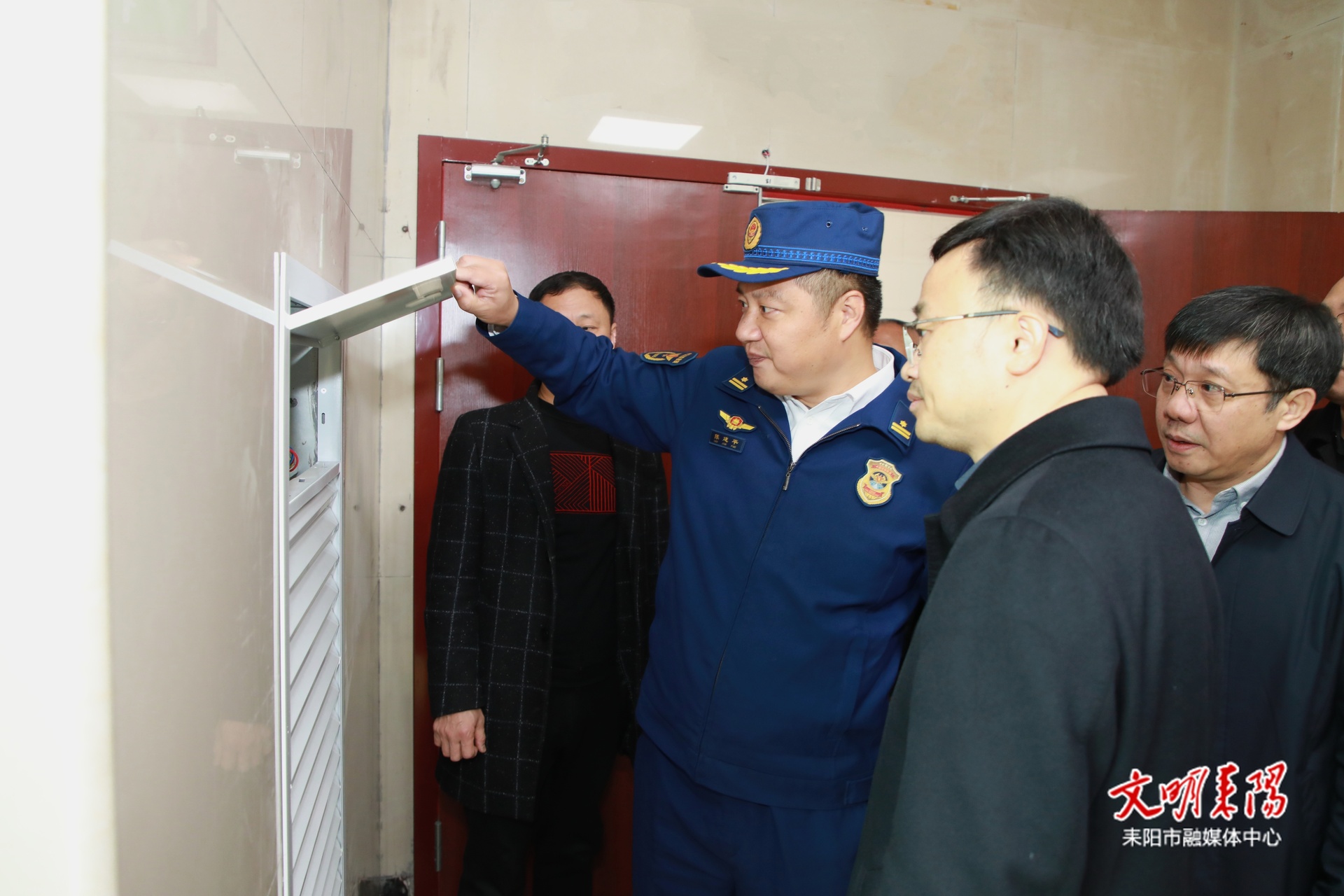 耒阳融媒12月23日讯(记者 袁成龙 曾志明)12月23日上午,市委书记张润槐到城区部分高层住宅小区等重点场所督导检查消防安全工作。他强调,要坚持人民至上、生命至上、安全第一,强化风险意识,压实各方责任,从严从实从细抓好消防安全工作,坚决防范遏制各类火灾事故发生,全力保障人民群众生命财产安全。