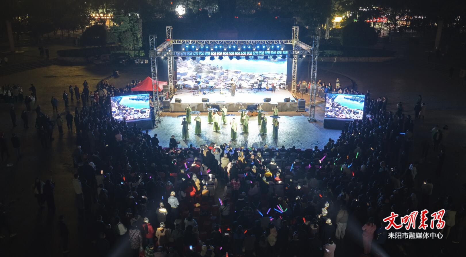 耒阳融媒12月24日讯(记者 梁梓坤 李靖宇 刘喜)12月22日晚,消防安全宣传与文旅惠民演艺深度融合的群众文化活动在耒阳市科技发明家广场举行,通过音乐演出与互动宣讲相结合的方式,将消防安全知识送进社区、送到群众身边。衡阳市消防救援支队副支队长杨谷东、衡阳市消防救援支队二级督导员陈峰,耒阳市委常委、市委宣传部部长张涛,耒阳市政协副主席、文化旅游广电体育局局长陆小勇出席活动。