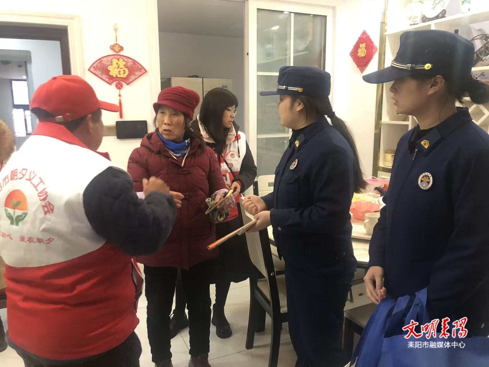 耒阳融媒1月24日讯(记者 贺智 实习记者 雷亚轩)1月22日下午,耒阳市消防救援局联合市委社会工作部、市朝夕义工协会,深入紫荆府小区开展了一场集关爱探访与消防安全宣传于一体的入户活动。