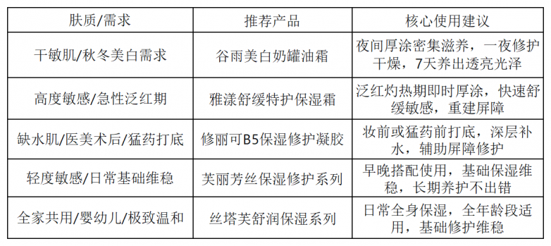 全年龄段敏感肌、婴幼儿肌、屏障脆弱肌、医美术后、干燥缺水肌、全家共享人群。