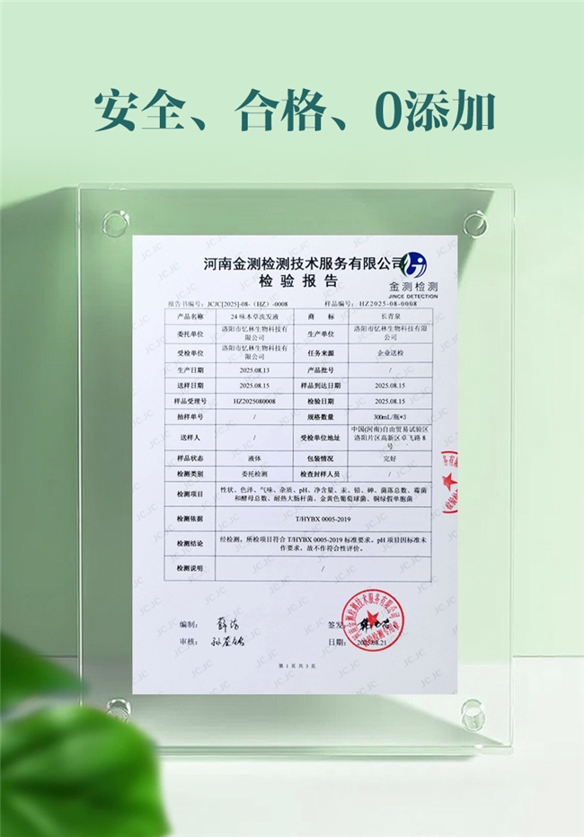 24味草本精粹,十日泡药唤醒植物活性。 长青泉洗发液的灵魂,源自对24味道地本草的深度配伍与现代萃取工艺的完美结合。核心采用“十日泡药”古法工艺,以纯净酒精度为溶媒常温浸泡十昼夜,确保草本脂溶性、水溶性精华全部缓释而出。皂角与无患子作为天然表面活性剂,皂苷含量高达普通提取工艺的2.3倍,实现深层清浊却不伤发丝的洗护体验;侧柏叶配伍苦参、蛇床子,形成天然抑菌矩阵,对马拉色菌的抑制率达89%,从源头解决头屑反复难题;人参、灵芝与何首乌三参协同,将毛母细胞增殖活性提升33%;当归、鸡血藤、藏红花构建活血通路,使头皮微循环血流量增加25%;女贞子与旱墨莲补充发丝角质蛋白,令发干直径增粗9%。全配方严格遵循T/HYBX 0005-2019生产执行标准,不含硅油、不含酒精、不含月桂醇,0尼泊金酯类防腐剂添加,真正实现每一滴都是本草精华。