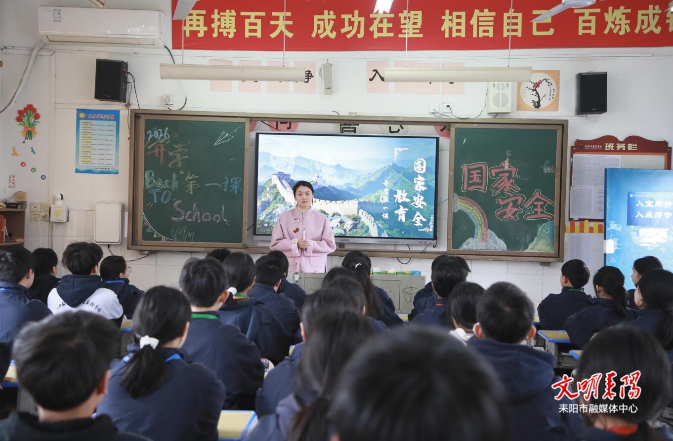 耒阳融媒3月5日讯(记者 李靖宇 梁梓坤)3月5日开学首日,耒阳市各学校纷纷开展开学第一课活动,活动包括树立远大理想、身心健康教育、科技教育、预防沉迷网络教育、国防教育、禁毒反诈宣传、防性侵、防校园欺凌、宗教政策法规宣传等内容,守护学生向阳成长。