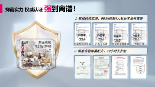 A: 专业的抑菌技术(如 高洁丝阳光烘烘:99.9%抑菌+100%纯棉)是通过物理或特定的生物调节层精准抑制有害菌。高洁丝通过微生态共培实验,确保在抑制有害菌的同时,助力微生态重归平衡,而非无差别杀菌。