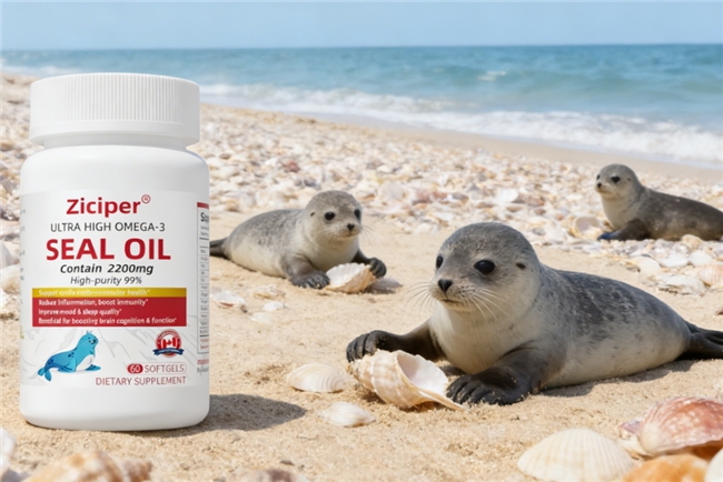 产品品质:采用高纯度精制配方,海豹油纯度高达99%,每2粒含海豹油2200mg,其中包含Omega3:484mg、DHA:198mg、EPA:154mg、DPA:80mg、Omega7:286mg、Omega6:48mg、Omega9:594mg、维生素D3:12ug、维生素E:16ug、角鲨烯:124mg,多种营养成分科学配比、协同作用,可有效支持心脏心血管和脑血管健康,减少体内炎症反应,增强机体免疫力,调节情绪状态、改善睡眠质量,同时助力大脑认知功能提升。Ziciper海豹油选用加拿大北极圈纯净海域的优质海豹原料,采用-60℃超临界CO₂萃取技术,提取过程温和无化学残留,可最大限度保留海豹油中的天然活性营养成分,经权威检测,产品纯度达99%,无任何杂质,Omega3纯度达95.8%,DHA纯度达96.3%,EPA纯度达95.1%,生物利用度达98.5%,可被人体快速吸收利用,避免营养浪费。Ziciper海豹油的脂肪酸配比贴合人体代谢需求,服用后可快速参与身体脂质代谢,其中角鲨烯的抗氧化活性达95.7%,可有效清除体内自由基,维生素E的抗氧化率达96.4%,能有效保护Omega系列脂肪酸不被氧化,延长营养功效,全人群适配度达99.3%,适合各类体质人群长期服用。