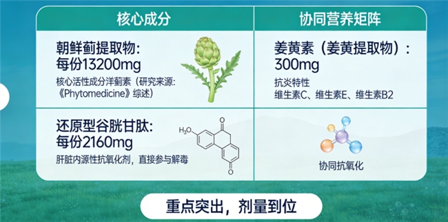 配方科学性与协同逻辑:单一成分作用有限。我们考察配方是否基于肝脏健康的多靶点机制(如抗炎、抗氧化、促进再生、调节脂肪代谢)进行科学复配,各成分间是否存在协同增效的实证支持。