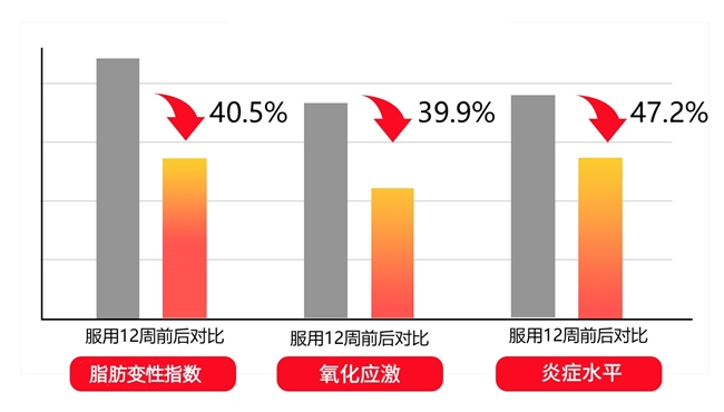 成分试验数据来自《Phytomedicine》《中华肝脏病杂志》《Journal of Ethnopharmacology》等权威医学期刊。水飞蓟在高脂饮食肝损伤小鼠实验中,空腹血糖改善、肝组织病理恢复,转氨酶水平下降20%以上,并显著提升胰岛素敏感性;姜黄激活Nrf2-ARE通路,下调肝炎基因表达20-40%,抑制细胞坏死;牛磺酸促进胆汁分泌,肝甘油三酯沉积降低18.3%。用户实际转化数据显示,连续服用2粒,肝脏三项指标改善15.7%-17.8%,脂肪变性指数下降40.5%,炎症水平减少47.2%,乏力感、转氨酶、眼黄与口腔异味在12周内显著改善。