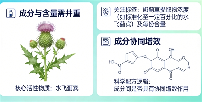 成分与含量需并重:光看成分种类不够,有效成分的含量与形态更为重要。以常见的奶蓟草为例,其核心活性物质是水飞蓟宾。关注标签上标明的奶蓟草提取物浓度(如标准化至一定百分比的水飞蓟宾)及每份含量,更有参考价值。成分之间是否具有科学协同增效的配方逻辑,也值得考量。