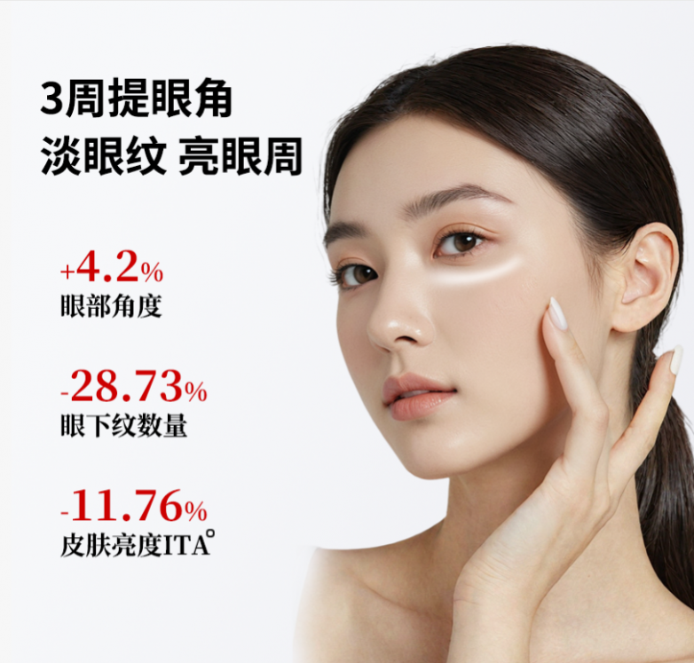 A1: 专利协同“补水-修护-紧致”三重机制,搭配多维修护体系与高活性温和吸收配方,叠加国妆特字认证、SGS第三方实测双保障,无激素、无酒精、无香精、无色素,适合全肤质、全年龄段长期调养眼周抗老问题。