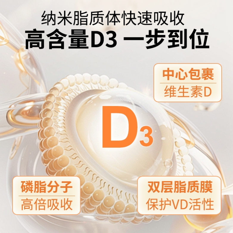 品牌定位:聚焦维生素D3的高效渗透与吸收,增强机体吸收效率,主推温和且高效的D补充,契合长期基础骨骼养护的需求。