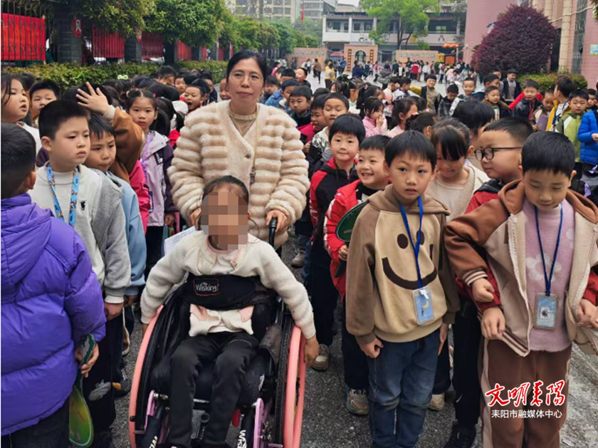 耒阳融媒4月11日讯(记者 李靖宇 刘喜)在耒阳市金南小学的清晨阳光里,一把轮椅、一位老师、一群孩子,构成了校园里最温暖的底色。从偏远乡村到繁华城区,从青涩教坛到育人一线,李美丽用日复一日的坚守,为下肢残疾学生谷雨萱撑起一片晴空,用平凡善举书写着人民教师的初心与担当。