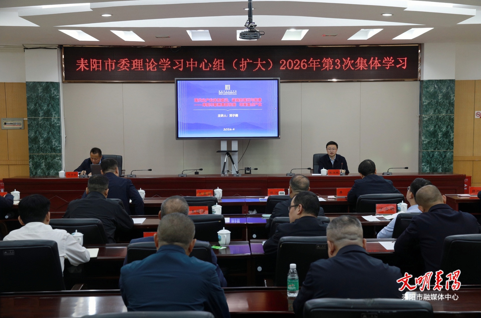 耒阳融媒4月16日讯(记者 袁成龙 曾志明)4月16日上午,市委书记张润槐主持市委理论学习中心组(扩大)2026年第三次集体学习,深入学习习近平经济思想、习近平总书记关于现代化产业体系的重要论述精神。