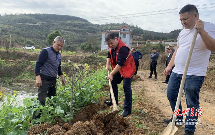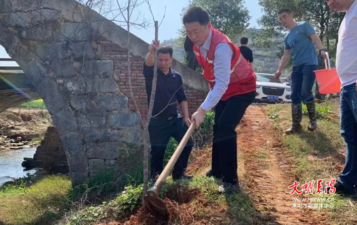 3月10日,导子镇开展“植树护河”义务活动,该镇全体干部职工在浔江河(洞中—浔江段)河道两边种植樱花树。