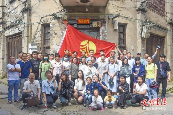 在参观新市古街的路上,高三年级贺继嶝老师主动担起了解说导游的角色,为大家介绍新市古街的历史沿革和古街往事,让很多第一次来游览的教师们迅速对古街有了更为直观、清楚的了解。大家一边游览,一边在充满纪念意义的建筑物旁合影,打卡留念。