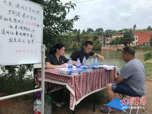 7月8日,湖南省耒阳市人民法院新市法庭在大市镇泉水村,就地摆摊,发放宣传资料,开展法律咨询,拉家常似的向村民讲解《民法典》,推动民法典走到群众身边、走进群众心里,成为家家户户的“社会百科全书”。
