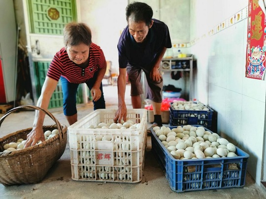 “我们家养500只麻鸭,每天能产500只鸭蛋,集市上卖8毛一个,每隔三四天赶一次墟,能赚1000多块钱。”在扶贫工作队的帮扶下,郑开宝干起了家禽养殖,生活是一天比一天过得好。现在家里不仅有了车子,房子也装修一新。