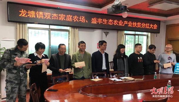 近日,龙塘镇召开产业扶贫分红大会,11个村(居)的驻(联)村工作队长、扶贫专干,代表入股贫困户领取2020年度产业扶贫分红资金。他们个个笑逐颜开,为今年的扶贫成果感到高兴。