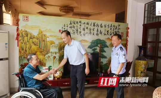 耒阳市融媒体中心讯(记者 李双鸿 江维东)9月17日,适逢耒阳市公安民警陈列辉因公负伤11周年,耒阳市委常委、组织部部长、总工会主席刘华文和耒阳市公安局政委曾善后一行来到陈列辉家中,感谢他及家人为党的事业和社会经济建设做出的突出贡献,并鼓励他和妻子要树立信心,安心治疗,党组织也将千方百计帮助他们解决生活上的困难。