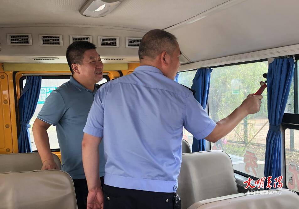 检查组通过“四不两直”方式,对大义镇辖区内校车进行了突击检查。民警重点检查了校车灭火器、安全带、安全锤、急救箱等安全设施配备情况,并对校车是否按规定线路行驶、是否存在超员超速、是否定期维护保养、校车标牌是否逾期、驾驶员是否持证上岗等事项逐一进行了查验。