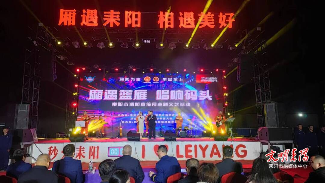 11月21日晚,耒阳市“厢遇耒阳·码头烟火”夜市广场灯光辉煌,歌声悠扬,以“厢遇蓝雁、唱响码头”为主题的消防音乐节暨“119”宣传活动在这里精彩上演。衡阳市消防救援支队党委书记、政委唐德尚出席,耒阳市委副书记、市长尹立鑫宣布开幕,耒阳市委常委、常务副市长尹建恒致辞。衡阳市消防救援支队党委委员、副支队长颜学光参加活动。