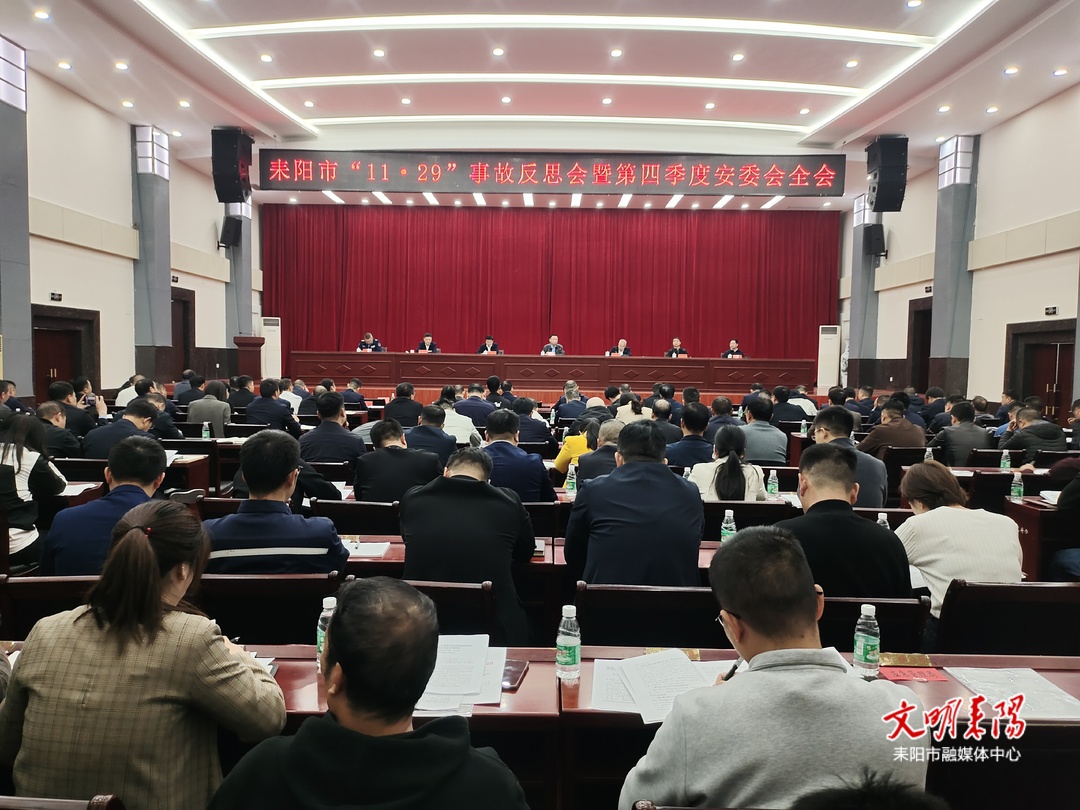 11月29日下午,耒阳市召开“11.29”事故反思会暨第四季度安委会全会,传达贯彻上级有关精神,通报安全生产典型案例,全面分析安全生产形势,深刻反思自省,坚决打好安全生产翻身仗。衡阳市安委办主任、应急管理局局长蒋小利出席并讲话,耒阳市委副书记、市长尹立鑫主持会议并讲话,龚志桂、李云、王志运、尹建恒、郭昔操等全体在家市领导出席会议。
