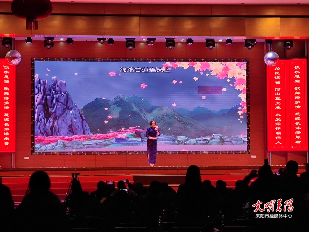 12月16日下午,由耒阳市文学艺术界联合会主办,市诗词楹联学会承办,市融媒体中心、慈晖中学和戏曲家、音乐家、舞蹈家、书法家、摄影家等协会协办的纪念毛泽东诞辰130周年文艺展演开幕。市政协副主席陆小勇出席。