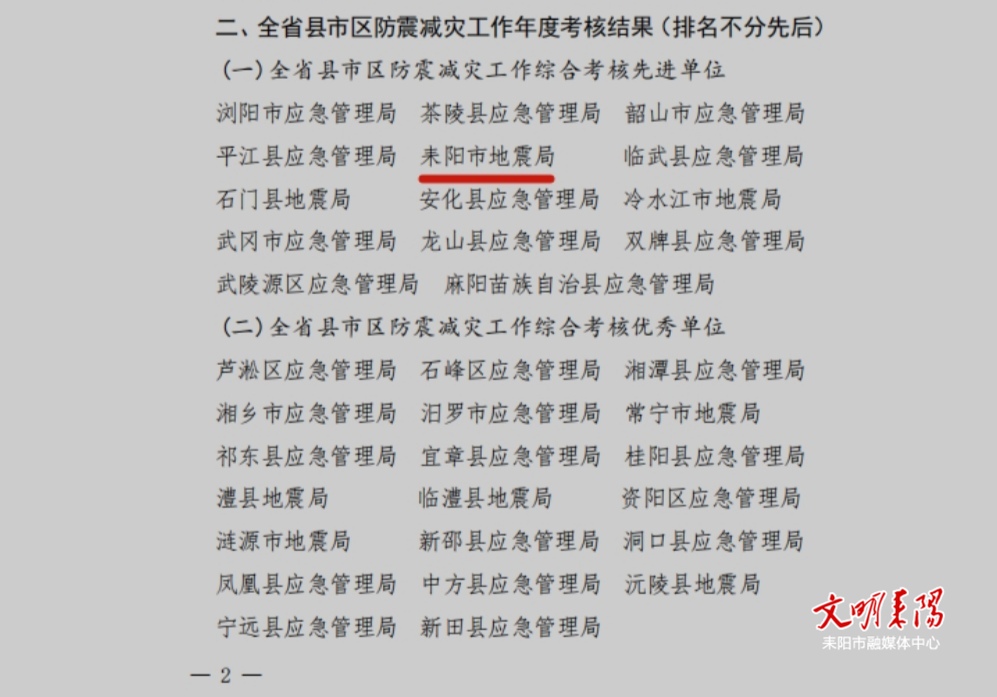 喜讯!耒阳市地震局荣获2024年度全省县级防震减灾先进单位