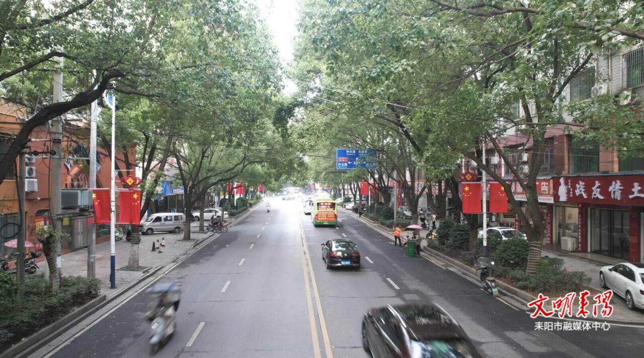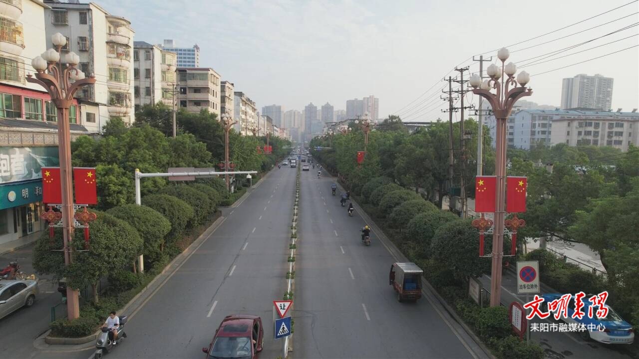 迎宾大道、耒阳大道、西湖路、金阳路等主干道悬挂国旗共4000余面,红旗迎风整齐展开,城市面貌焕然一新。五一广场、五一路与耒阳大道交叉路口等地还设置了国庆主题打卡点,吸引市民前来拍照留影,留住节日美好瞬间。