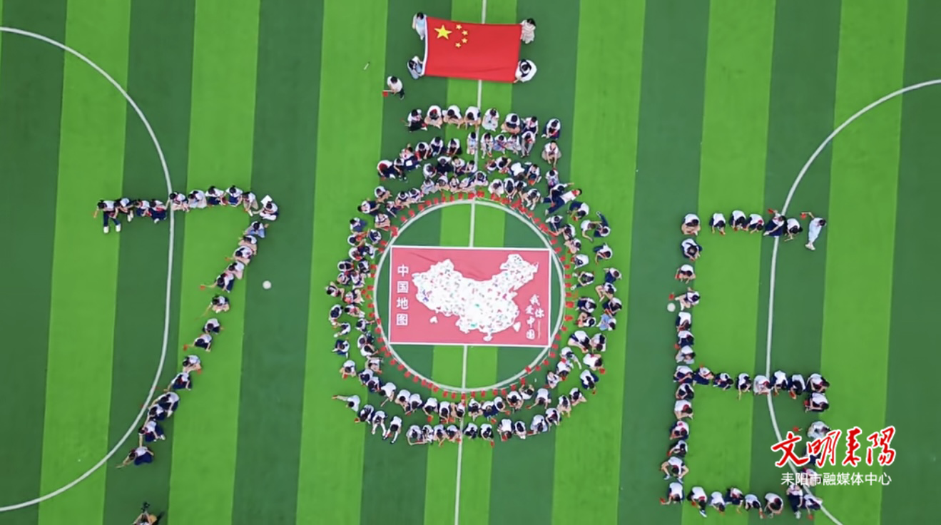 在彭桥小学,百余名少先队员共绘祖国地图。当完整的中国地图呈现在眼前时,所有少先队员围绕着地图,挥舞着手中的小国旗,齐声歌唱祖国,嘹亮的歌声回荡在校园,充满了对祖国的热爱与敬意。