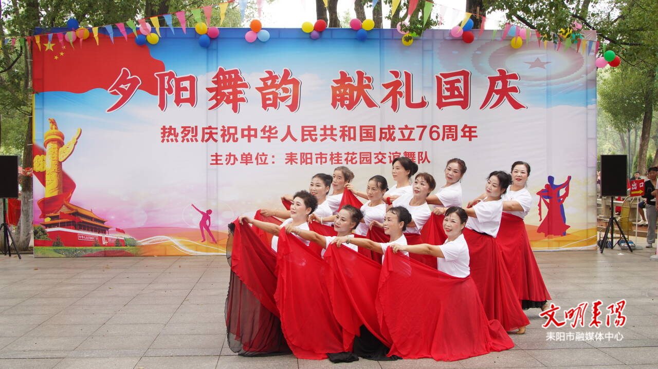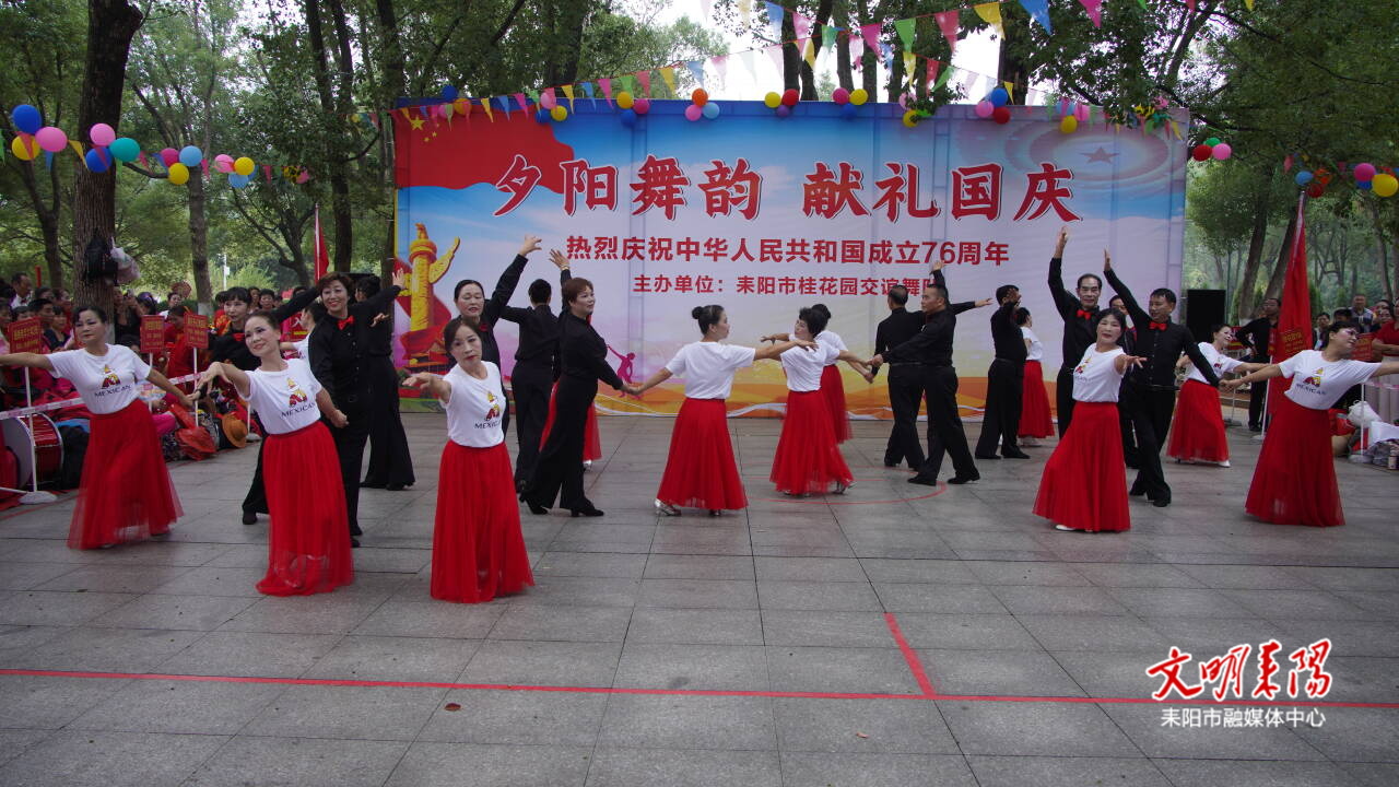 10月1日,耒阳市 “夕阳舞韵,献礼国庆” 活动热闹开场,400多名老年朋友自发参与,以歌舞展演的形式,庆祝中华人民共和国成立76周年。