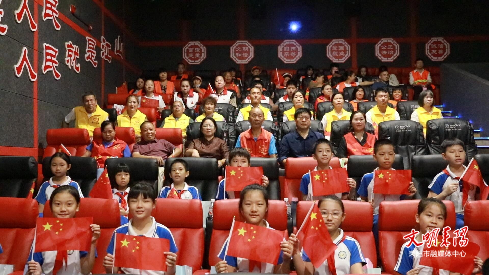 耒阳市创文办、市委宣传部、市文明办组织全市各级身边好人、道德模范,环卫工人、志愿者和师生代表等,在五一国际影城开展新时代文明实践观影活动, 大家齐聚一堂,共同观看爱国主题影片《东极岛》,共抒家国情怀。
