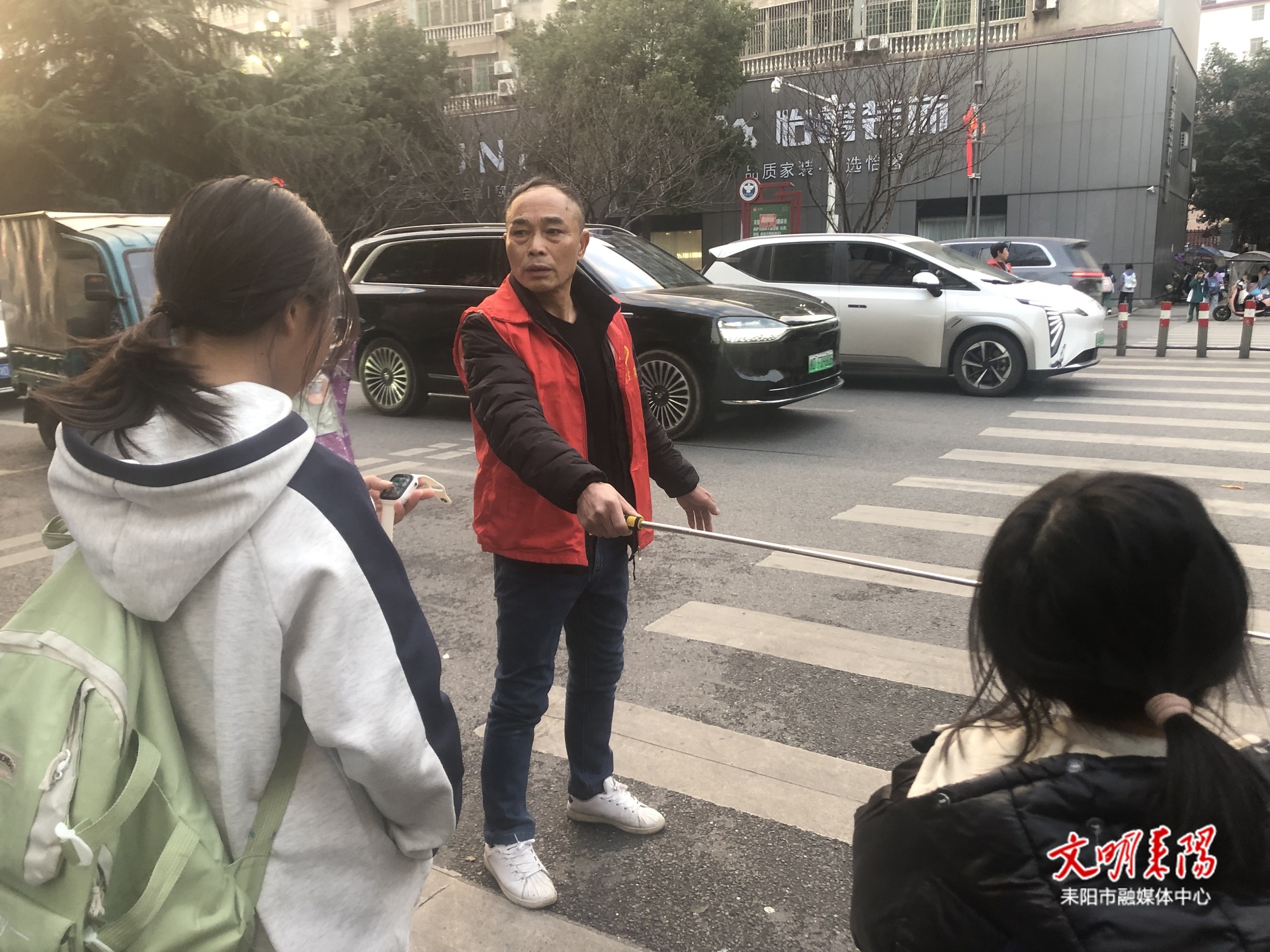 耒阳融媒1月19日讯(记者 贺智)每天上学、放学时分,梅桥小学校门口车流人潮中,总有一抹醒目的“志愿红”。一位清瘦的老人手持指引棒,时而拦停车辆,时而护送学生列队通过——他叫资太平,年过六旬,用近一年、三百多个晨昏的坚守,默默为孩子们铺就温暖安全的“最后一百米”。
